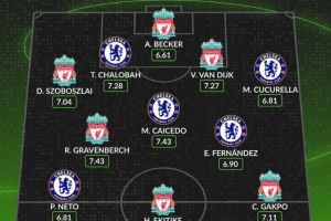 体育资讯10月4日讯 本轮英超焦点战利物浦对阵切尔西比赛即将打响,数据网站Whoscored也盘点了两队球员本赛季英超评分最高阵容,具体如下: