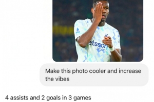 赛后国米官推晒出用ChatGPT整活的照片,他们将博尼庆祝的照片发给AI要其修图,并注明要把图片变得更酷,氛围感拉起来,AI答复道:“3场比赛2球4助攻,没法更嗨了。”