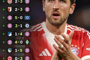 体育资讯10月25日讯 今日德甲第8轮,拜仁3-0战胜门兴,延续新赛季以来的无解战绩,开季连胜场次来到13场!